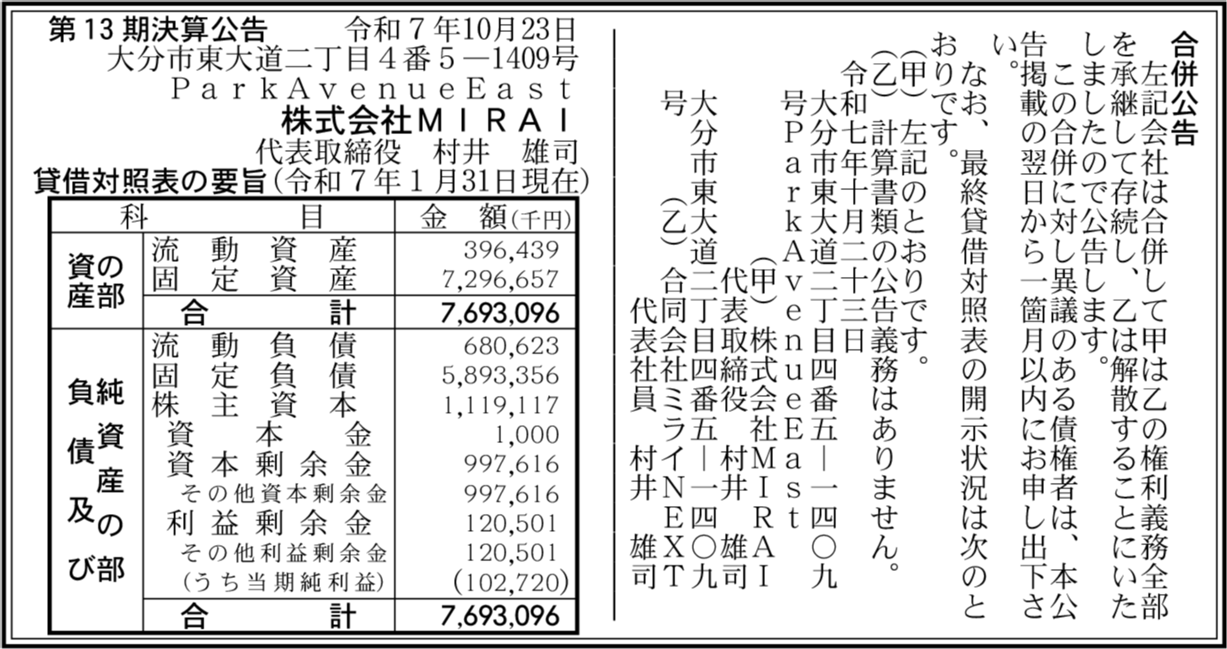 | 株式会社ミクト技建 大分市 【2024年12月期】 | △333万9,011円 | △113万7,385円 | 9,539万879円 |