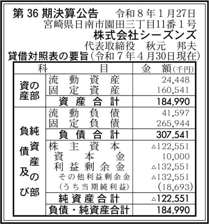 株式会社ホテルシーズン日南 宮崎県日南市 【2024年4月期】 |