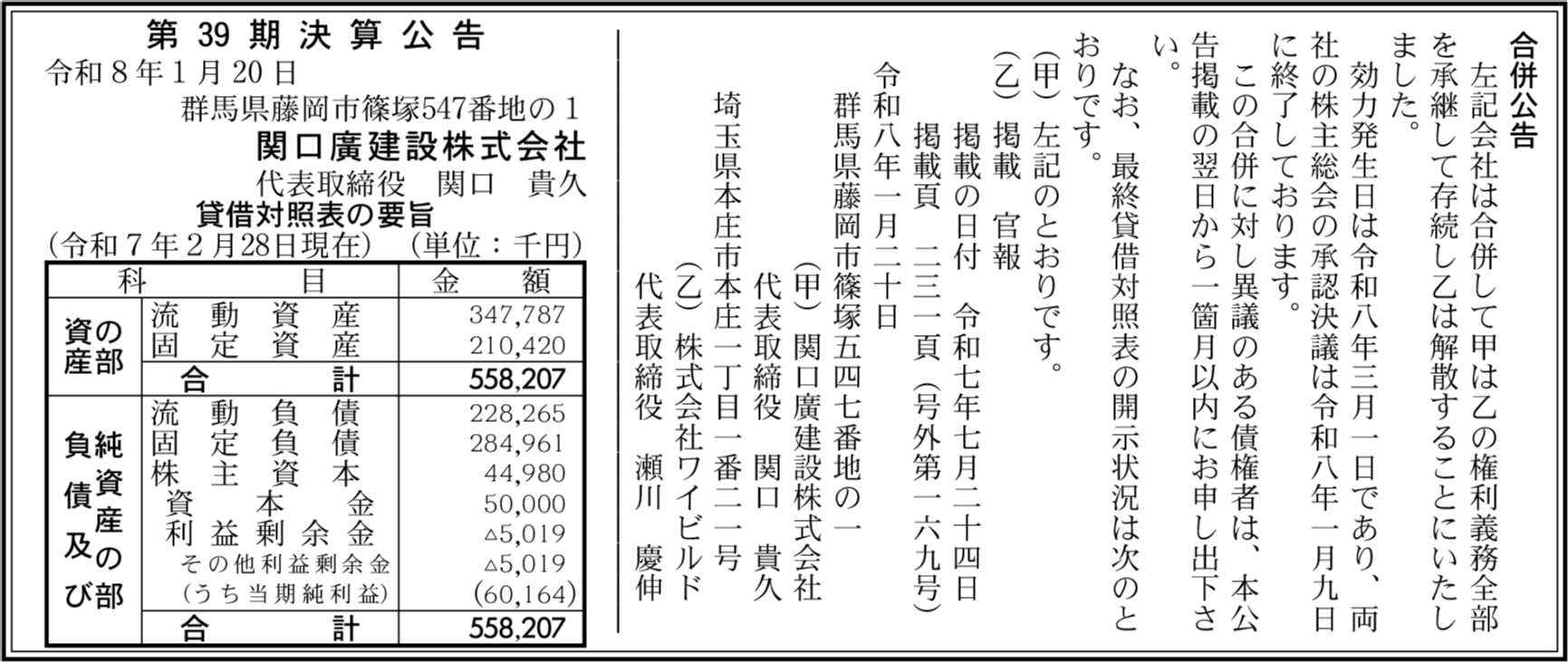 | 会社名 | 関口廣建設株式会社 |