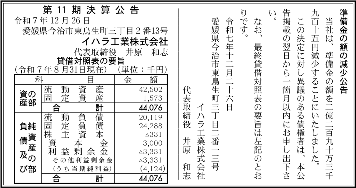 | 会社名 | イハラ工業株式会社 |