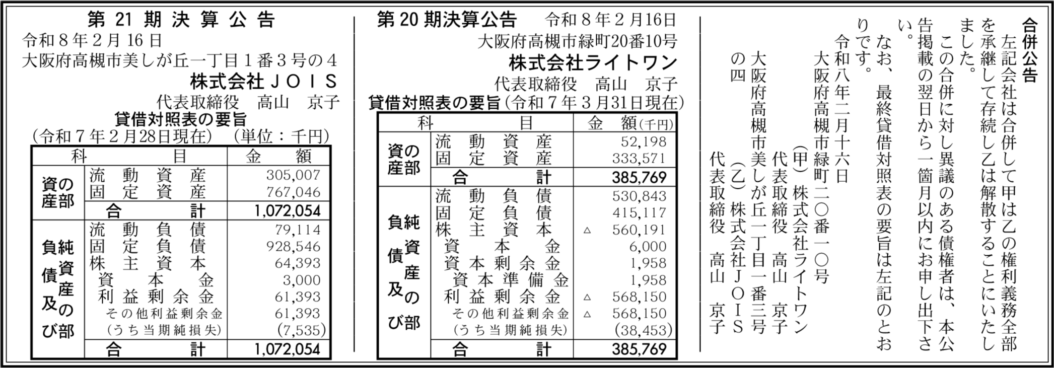株式会社ライトワン 大阪府高槻市 【2025年3月期】 |