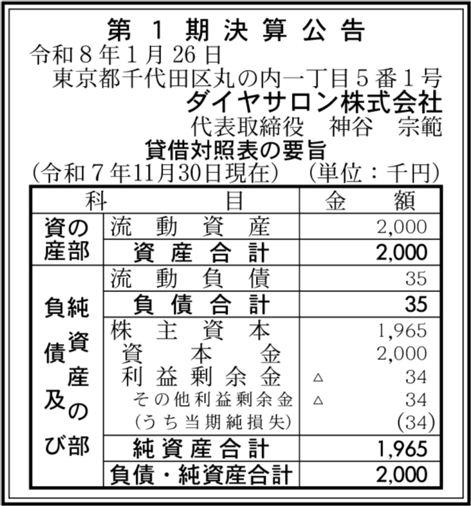 ダイヤムルソー株式会社 東京都千代田区 【2025年9月期】 |