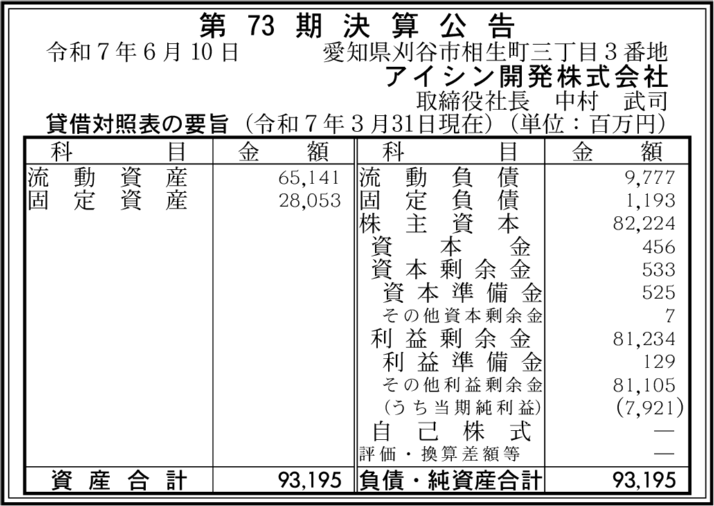 | 親会社・関連会社等 | 株式会社アイシン(86) |