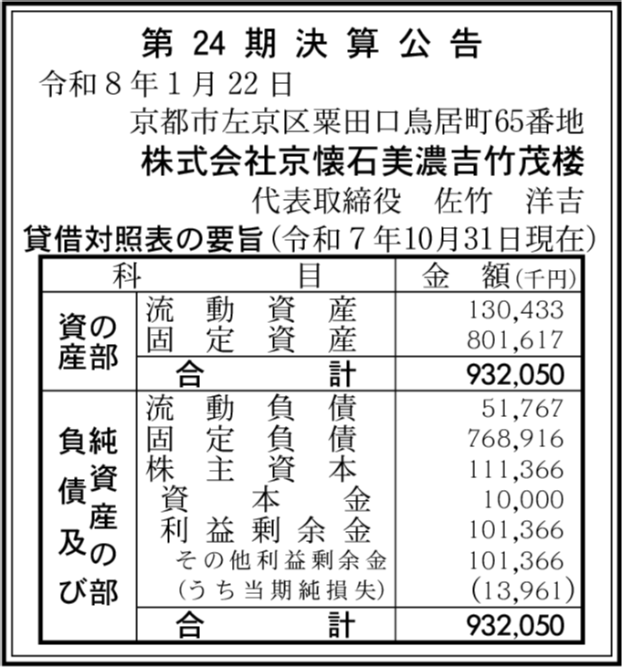 株式会社美濃吉 京都市左京区 【2025年10月期】 |