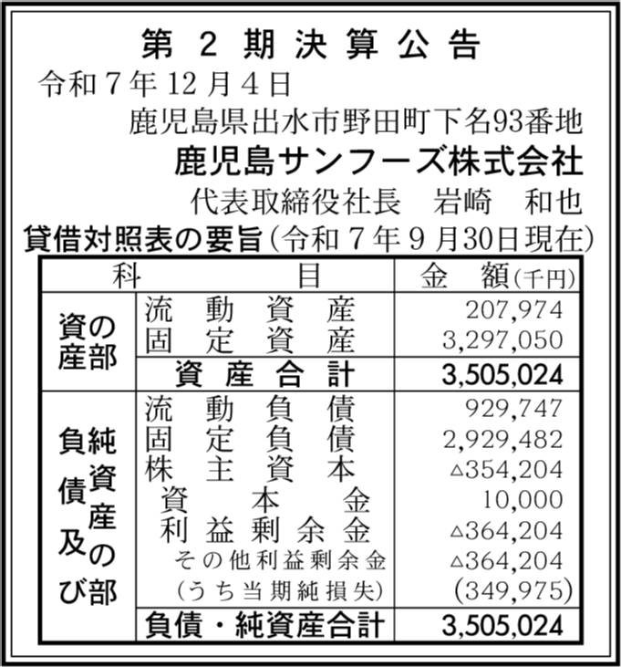 センターフーズ株式会社 鹿児島県いちき串木野市 【2025年9月期】 |