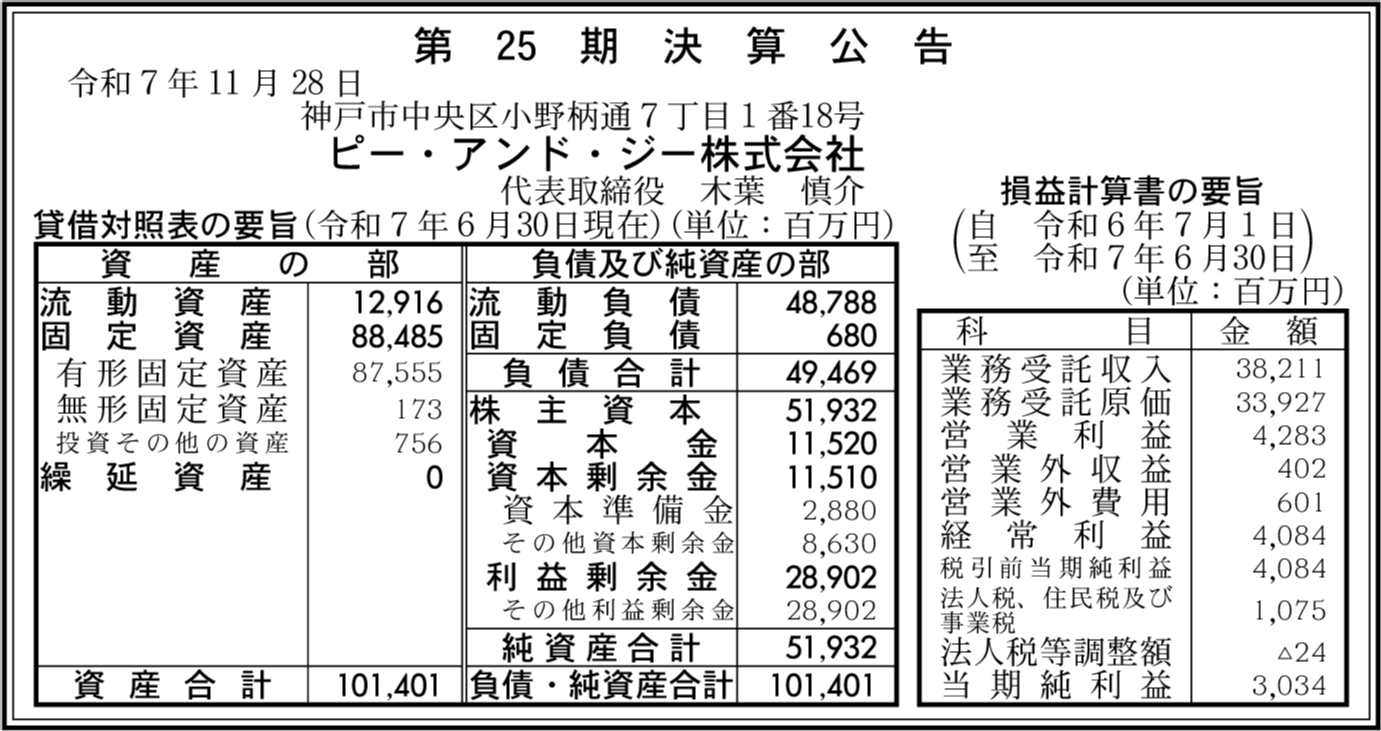 | 会社名 | ピー・アンド・ジー株式会社 |