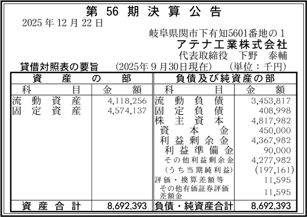 | 総資産 | 86億9,239万3,000円 (+2.03%) |
