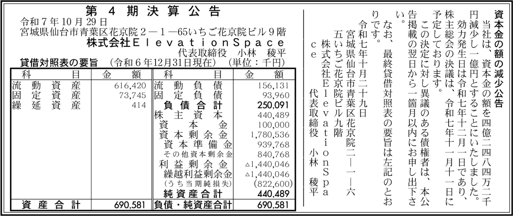 | 利益剰余金 | △14億4,004万6,000円 (赤字拡大) |