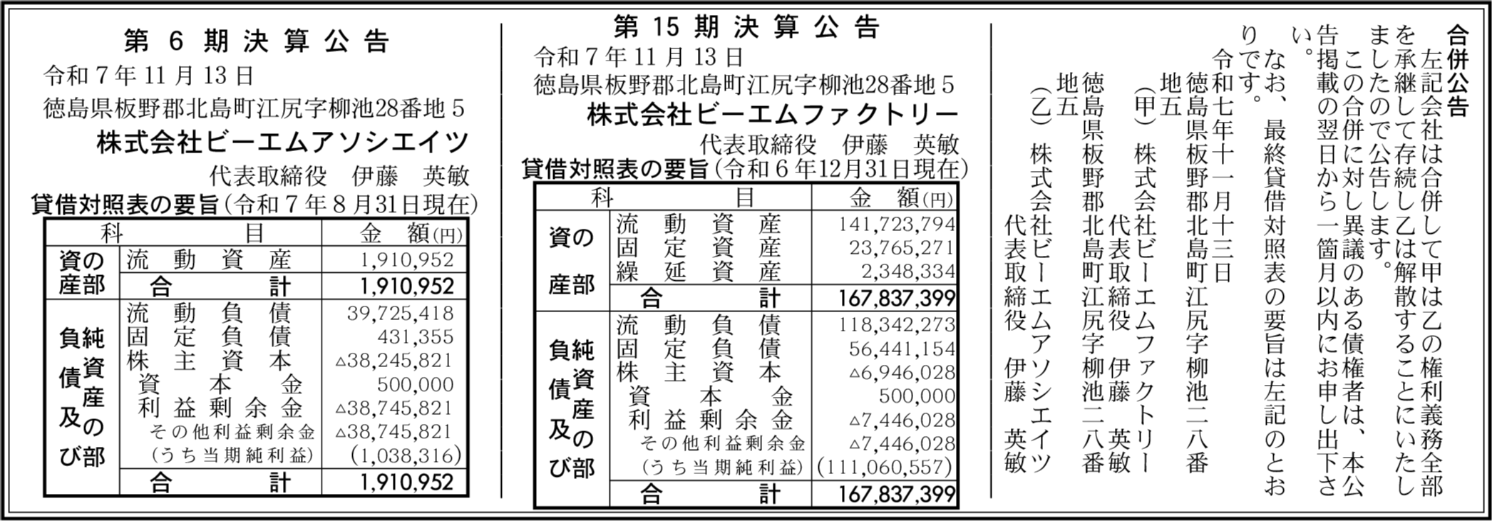 株式会社ビーエムアソシエイツ 徳島県板野郡北島町 【2025年8月期】 |
