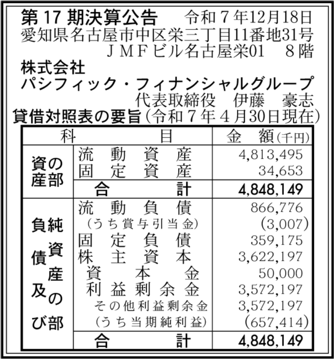 | 会社名 | 株式会社パシフィック・フィナンシャルグループ |