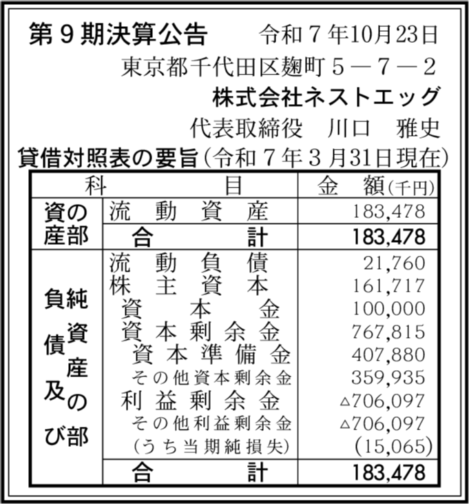 | 利益剰余金 | △7億609万7,000円 (赤字拡大) |