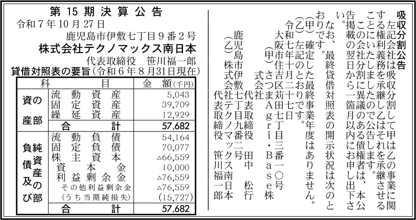 株式会社ナンリョウ 鹿児島市 【2025年4月期】 |