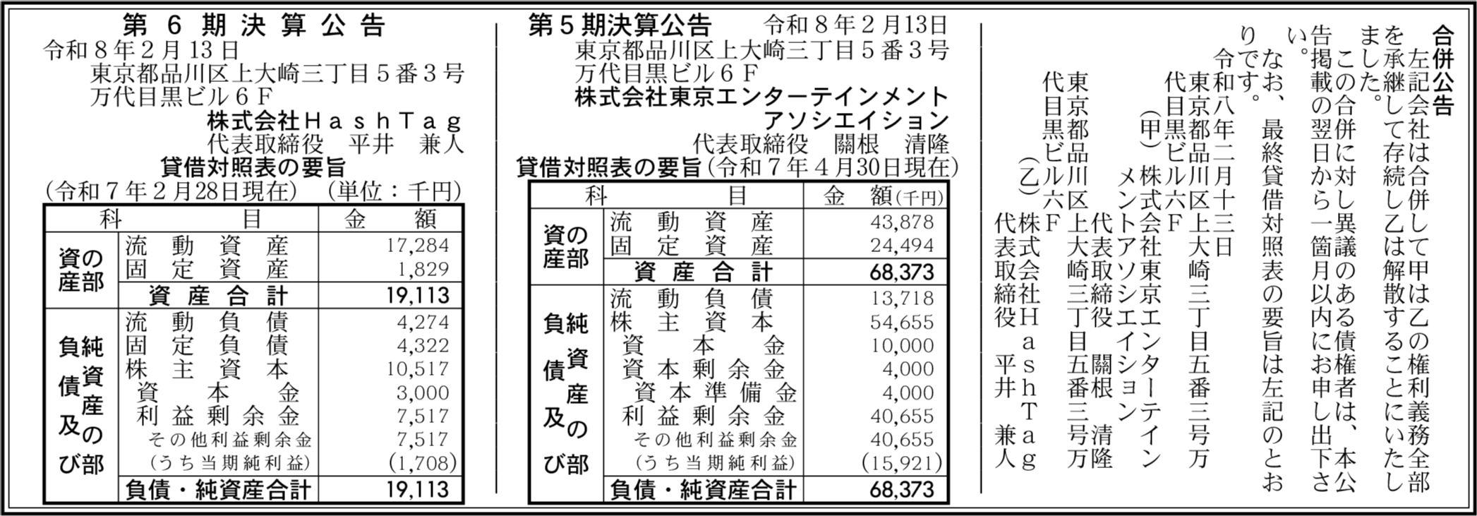 株式会社HashTag 東京都品川区 【2025年2月期】 |