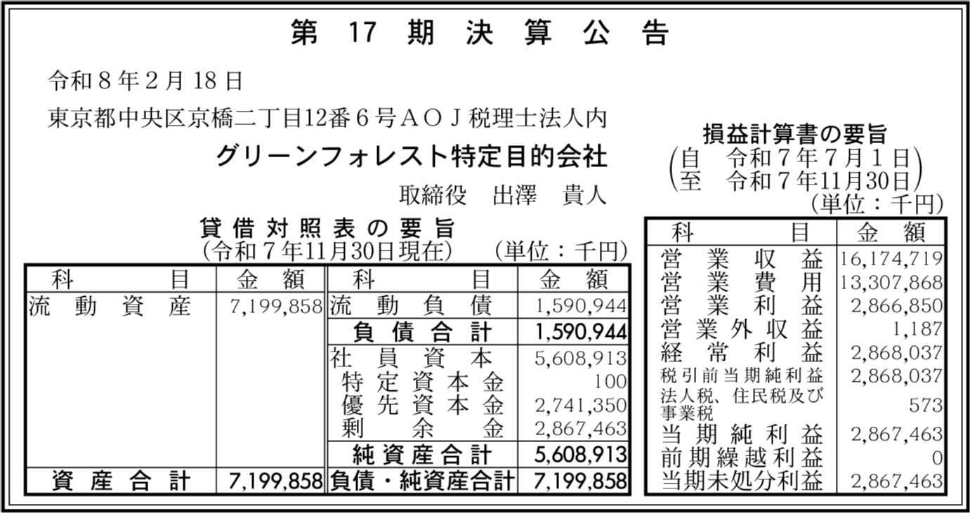 | 会社名 | グリーンフォレスト特定目的会社 |