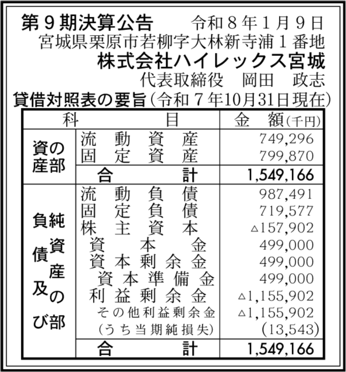 | 会社名 | 株式会社ハイレックス宮城 |