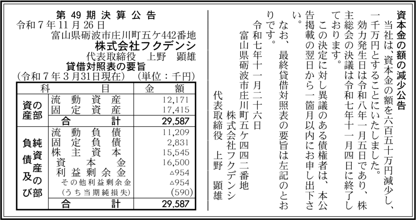 有限会社タカノス地所 富山県砺波市 【2025年3月期】 |
