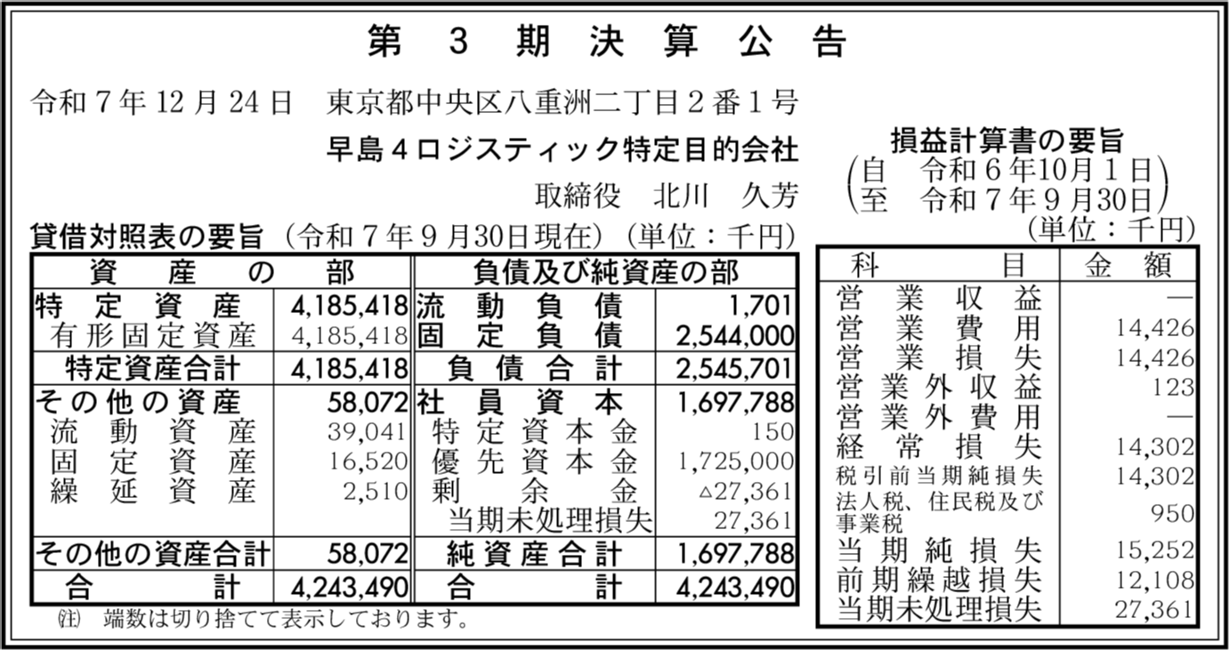 | 会社名 | 早島4ロジスティック特定目的会社 |