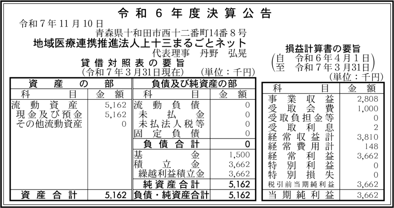 | 会社名 | 地域医療連携推進法人上十三まるごとネット |
