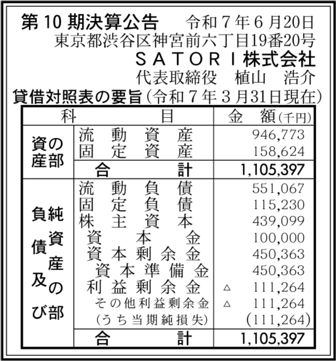 | 会社名 | SATORI株式会社 |