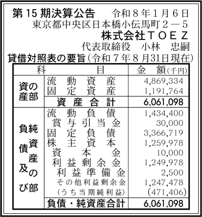 | 総資産 | 60億6,109万8,000円 (+37.91%) |