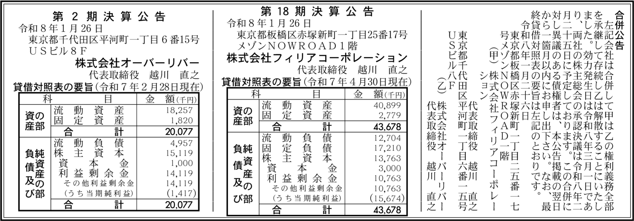 株式会社オーバーリバー 東京都千代田区 【2025年2月期】 |