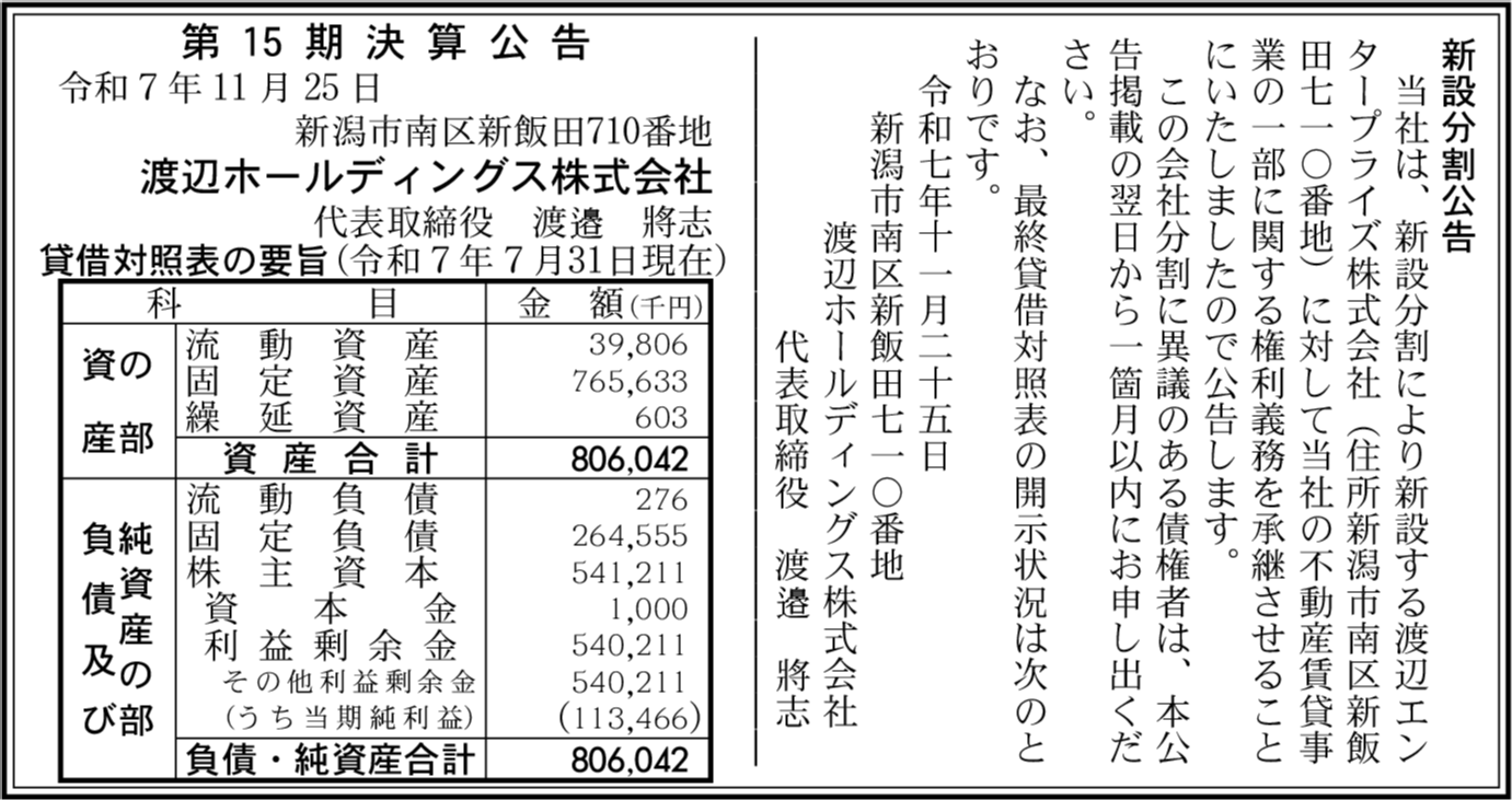 | 会社名 | 渡辺ホールディングス株式会社 |