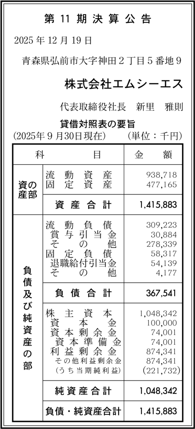 株式会社弘新建設 青森県弘前市 【2025年3月期】 |