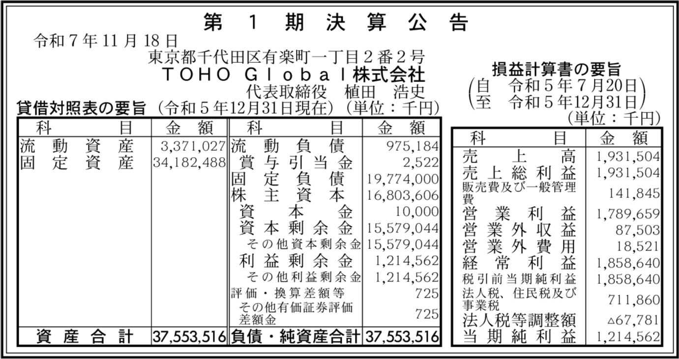TOHOスタジオ株式会社 東京都千代田区 【2020年2月期】 |