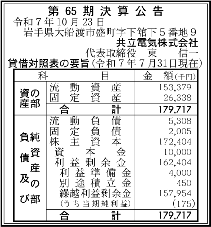 株式会社理工電気 岩手県大船渡市 【2024年9月期】 |