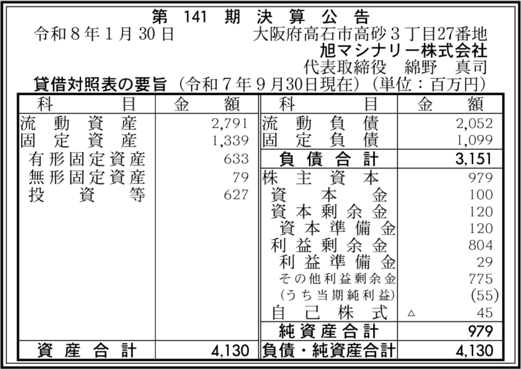 | 総資産 | 41億3,000万円 (▲6.05%) |