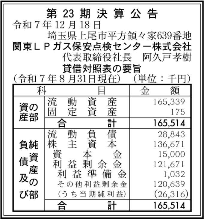関東LPガス保安点検センター株式会社 埼玉県上尾市 |