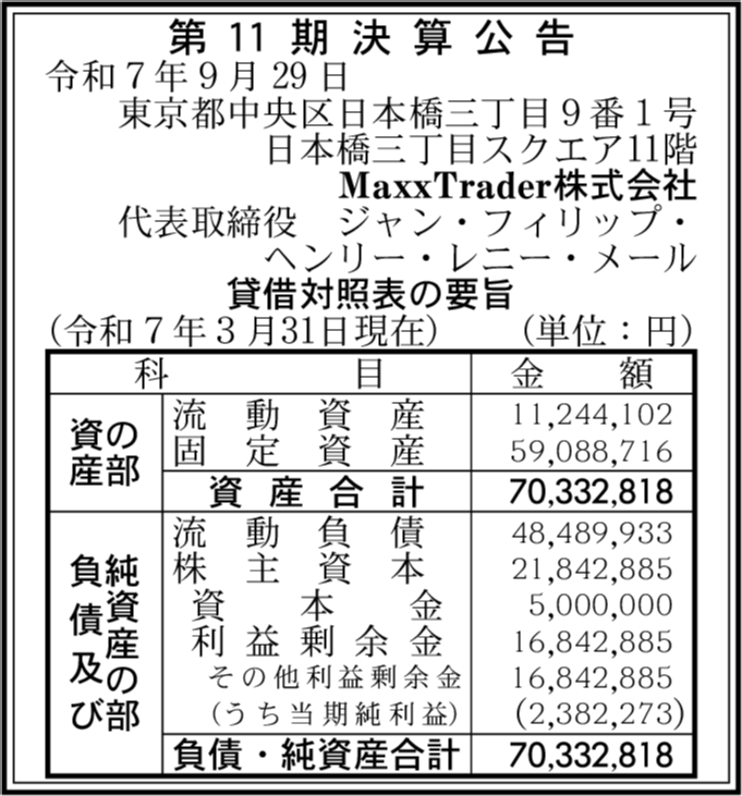 東京都中央区日本橋三丁目9番1号日本橋三丁目スクエア11階 同じ住所の会社を検索 |