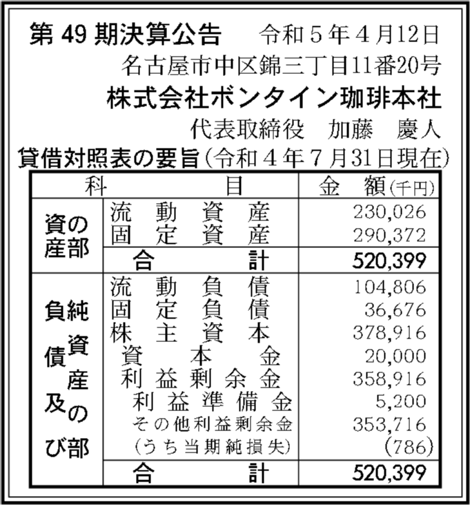 | 会社名 | 株式会社ボンタイン珈琲本社 |