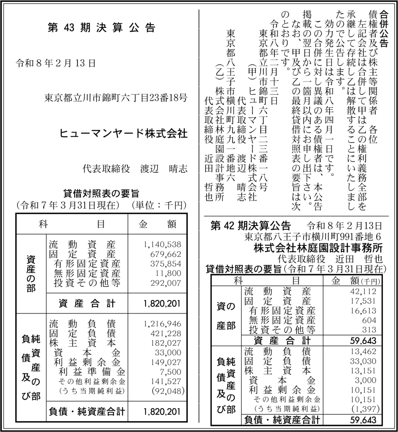 | 株式会社ヒューマンヤード | 東京都立川市 | 1,854万1,000円 |