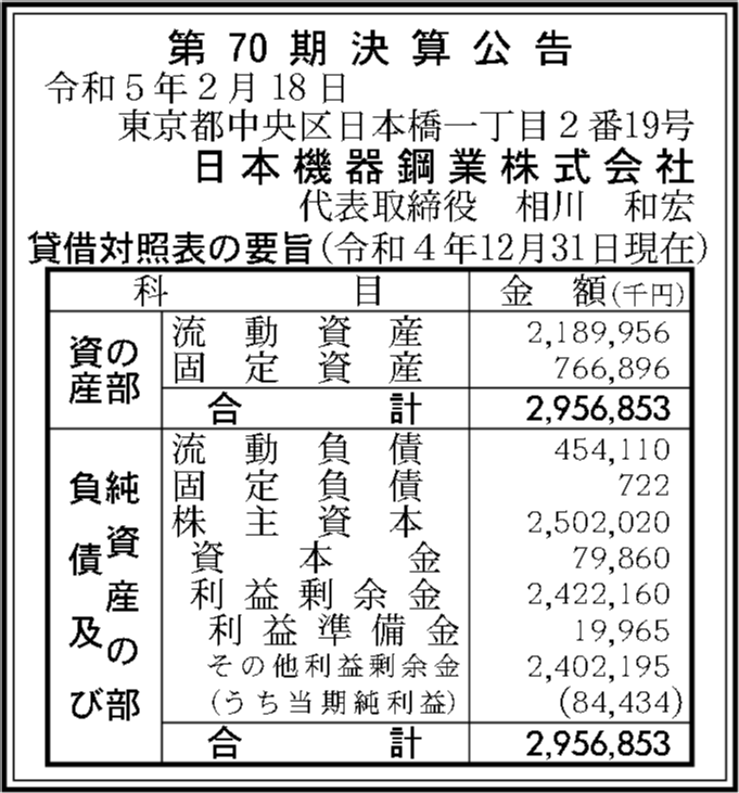 | 利益剰余金 | 24億2,216万円 (+2.56%) |
