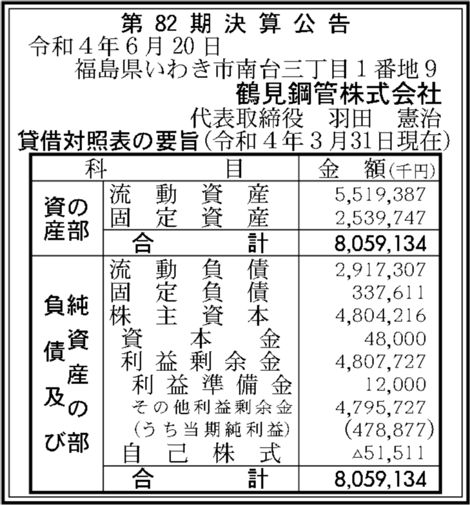 | 総資産 | 80億5,913万4,000円 (+7.27%) |