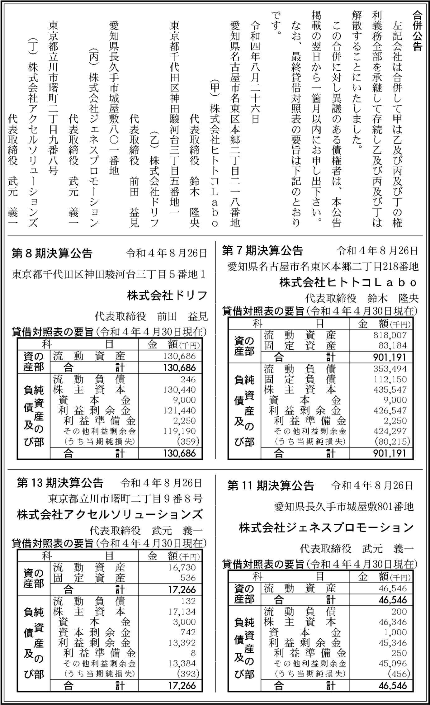 株式会社アクセルソリューションズ閉鎖済み 東京都立川市 【2022年4月期】 |