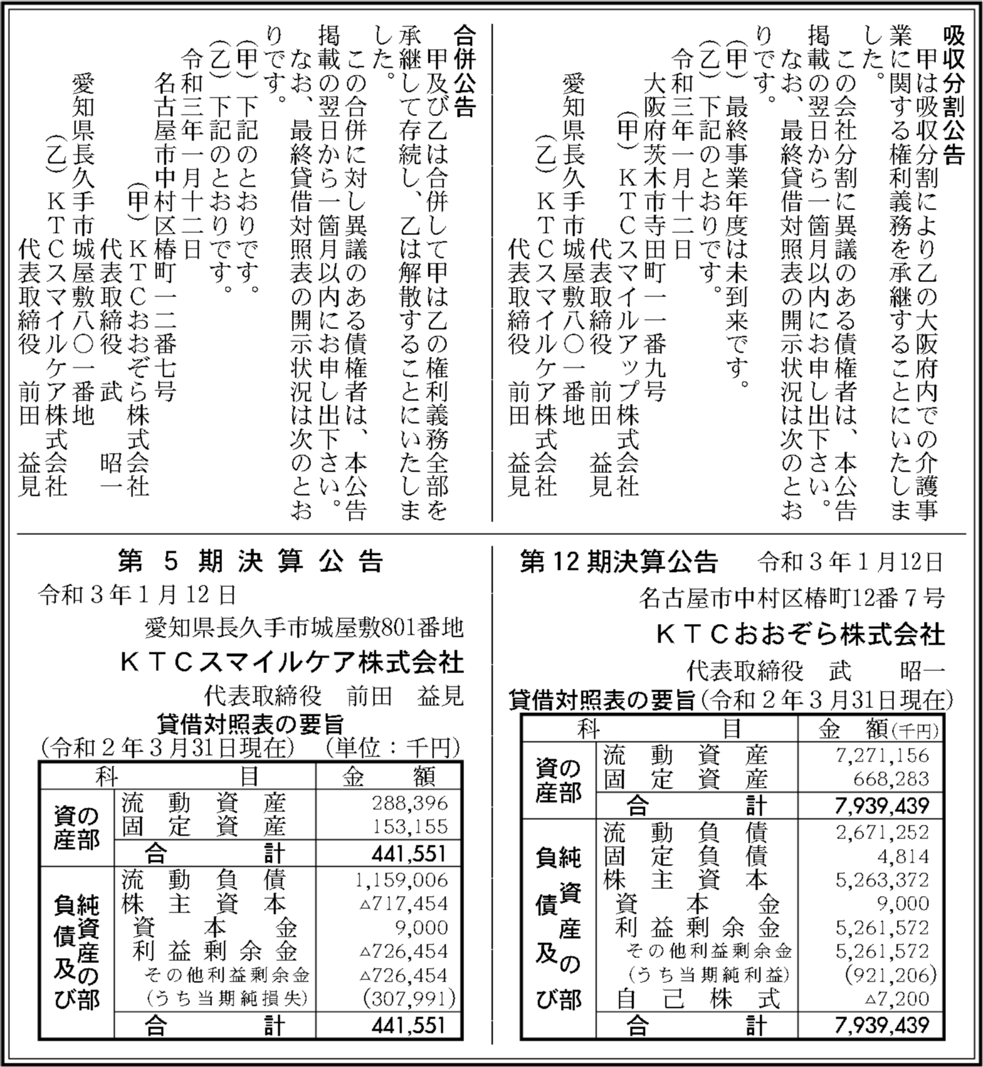 KTCスマイルケア株式会社 名古屋市名東区 【2024年4月期】 |