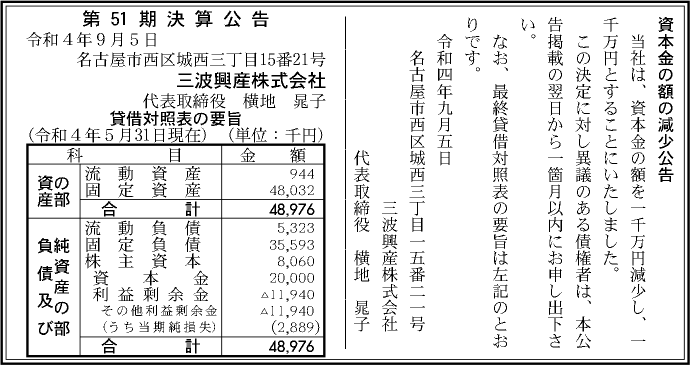 | 会社名 | 三波興産株式会社 |